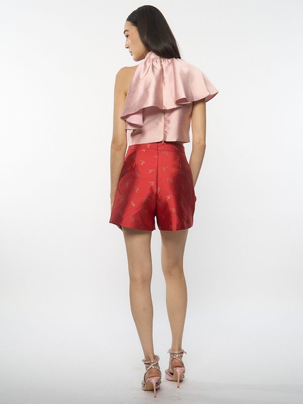 Bursting with dramatic ruffles and vibrant pinks, this piece channels the bougainvillea’s carefree charm, ideal for festive reunions and dancing into the night.