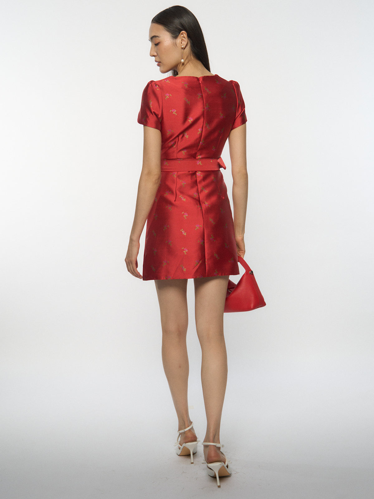Inspired by the bold hibiscus flower, this piece pairs a sharp silhouette with subtle floral embroidery and a striking scarlet hue, perfect for blazing your own path with confidence and flair.