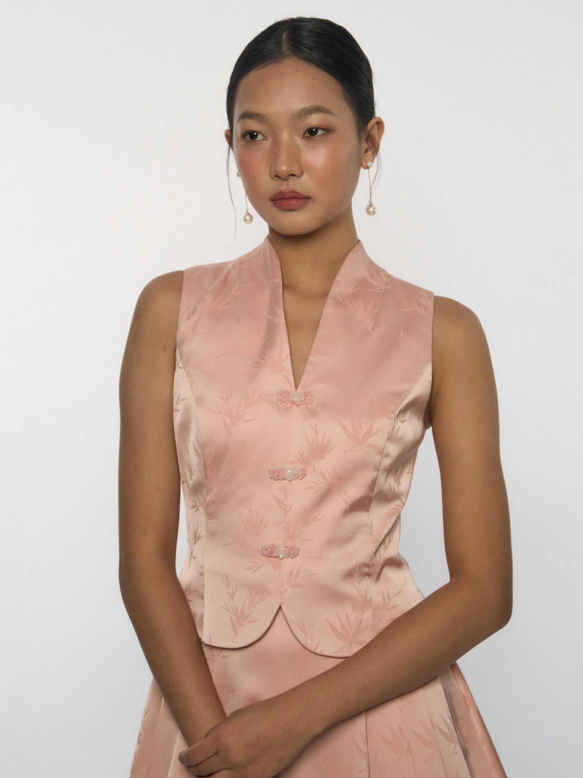 - Designed to be fitted at the bust and waist, loose at the hip.