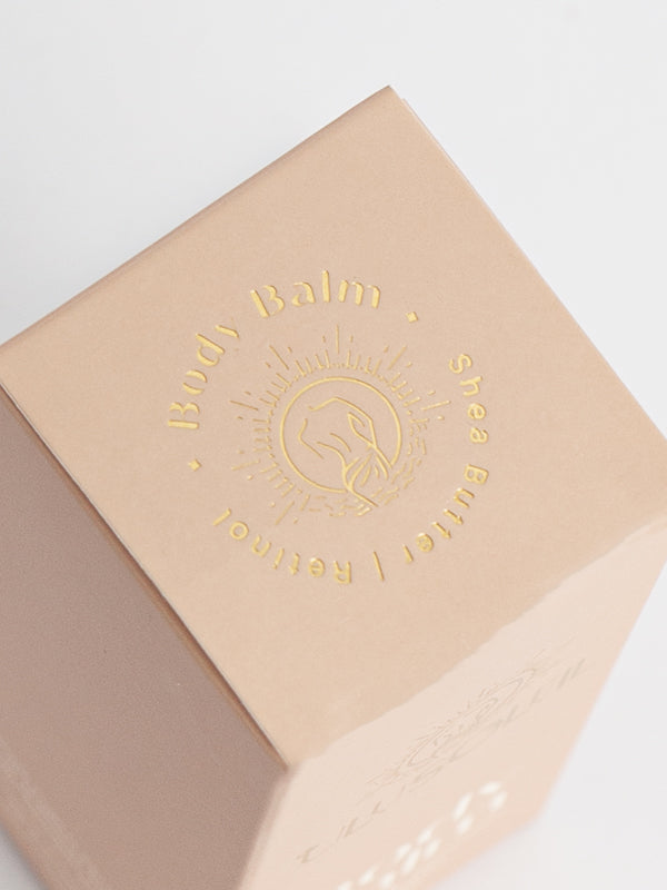 Remove lid and gently push the base upwards until balm is visible. Apply the body balm generously in back-and-forth motions and allow your skin to soak in the goodness. For maximum effect, we recommend use after showering and before heading to bed, paying special attention to any areas that may want a little extra love, such as dry/uneven skin, scarring, stretchmarks or cellulite. Retinol can cause sun-sensitivity, so avoid use before prolonged sun exposure.